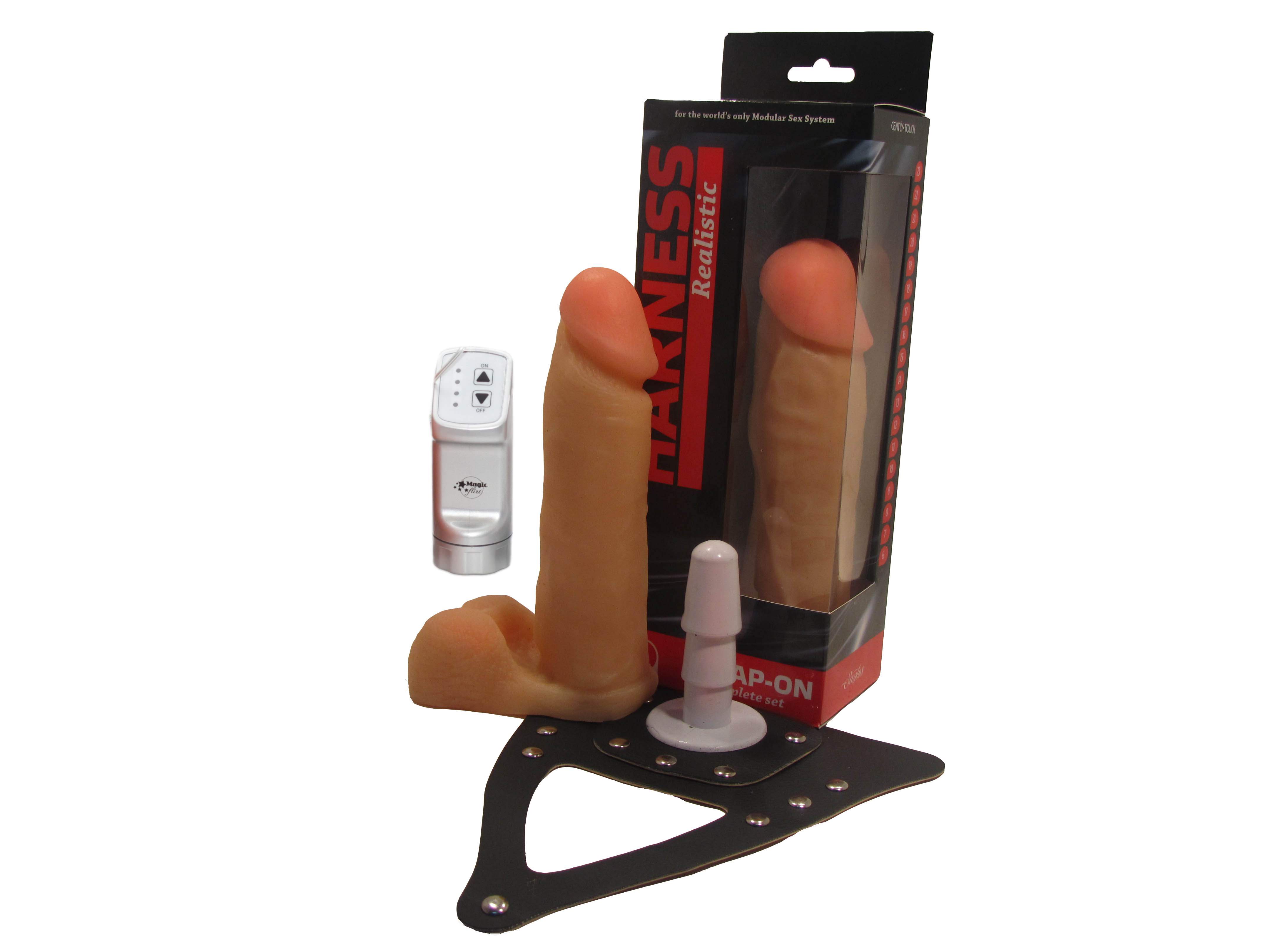 Вибромассажер с поясом Harness Realistic с пультом 19см