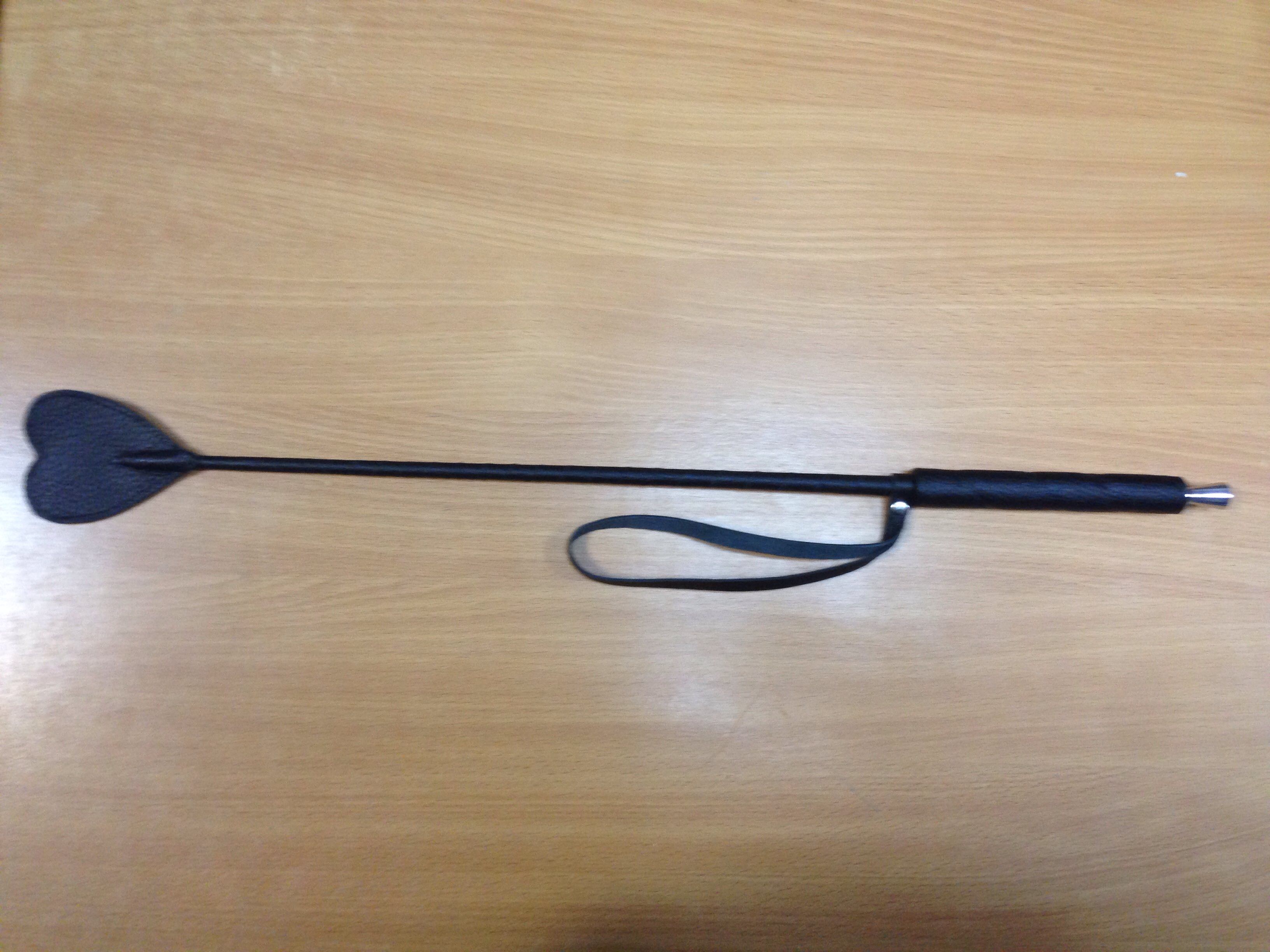 Состоит из деревянной рукояти и хлыста из гибкой полимерной основы, оплетённых натуральной кожей. На кончике хлыста имеется окончание в виде кожаного шлепка в виде сердечка. Общая длина стека 70 см.
