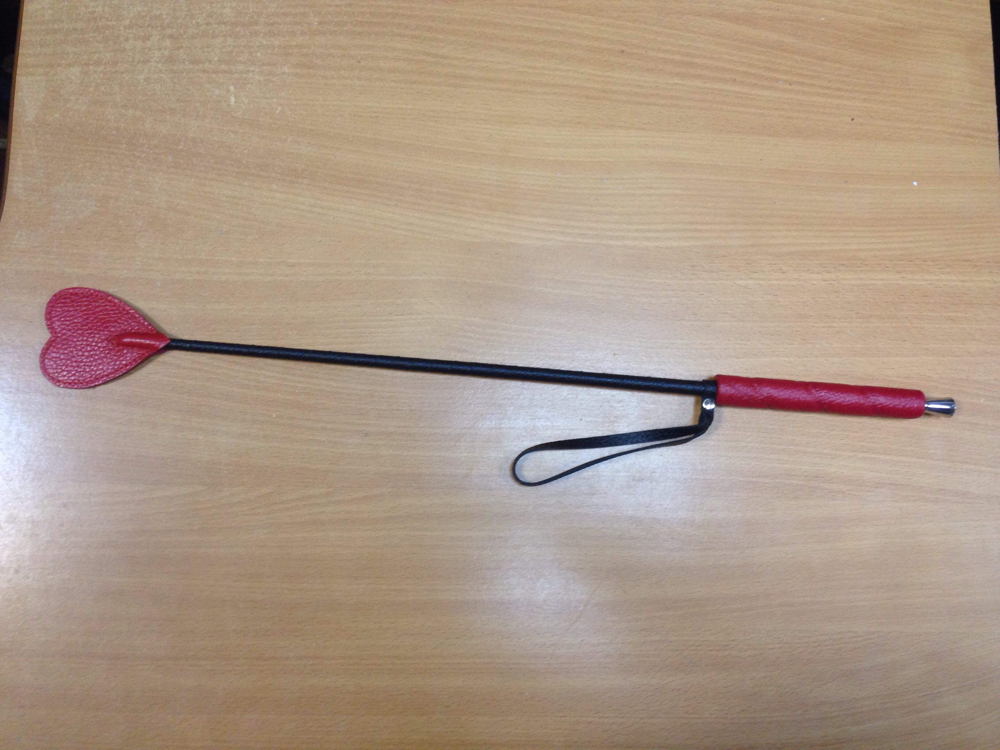 Состоит из деревянной рукояти и хлыста из гибкой полимерной основы, оплетённых натуральной кожей. На кончике хлыста имеется окончание в виде кожаного шлепка в виде сердечка. Общая длина стека 70 см.