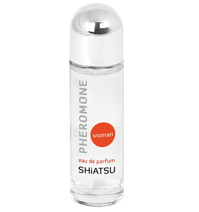Женские духи для тела с феромонами Шиатсу привлекают своим ароматом противоположный пол. В состав духов входит мандарин и герань, розовый перец и пачули, а также персик и сирень.