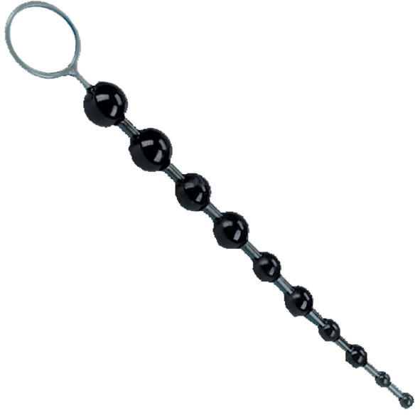 Стильная анальная цепочка черного цвета состоит из небольших шариков.