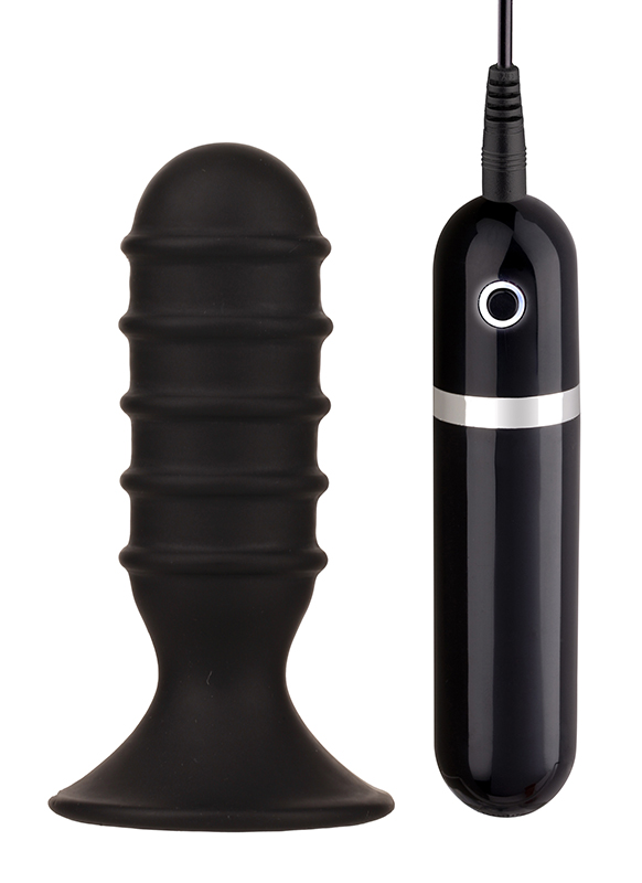 Анальный стимулятор ребристой формы выполнен из медицинского силикона и крепится к любой поверхности с помощью присоски. Снабжен различными режимами: 10 режимов вибрации, пульсации и нарастания. Управляется помощью пульта.