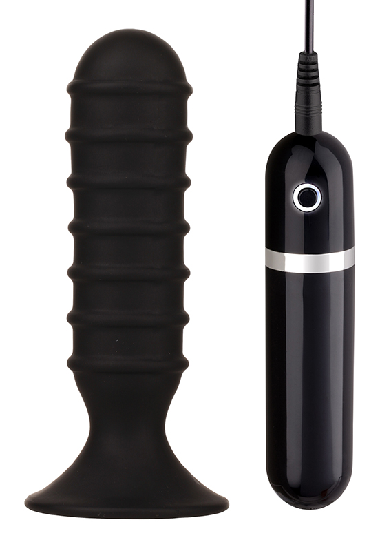 Анальный стимулятор ребристой формы выполнен из медицинского силикона и крепится к любой поверхности с помощью присоски. Снабжен различными режимами: 10 режимов вибрации, пульсации и нарастания. Управляется помощью пульта.