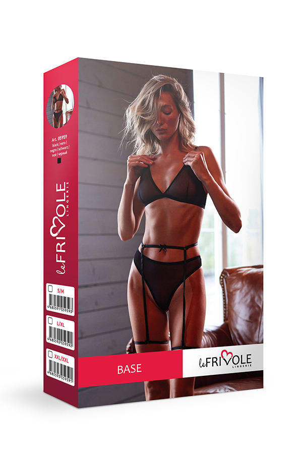 Базовый комплект нижнего белья из прозрачного мягкого бюстгалтера, трусиков-стрингов и стреп-гартера станет отличным подарком для вашей возлюбленной, которая, облачившись в это белье, поразит вас своей сексуальностью.