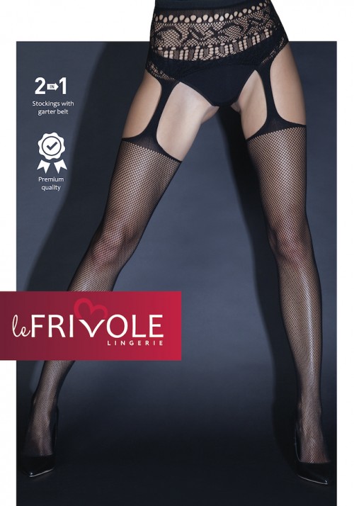 Чулки в сетку с высоким кружевным поясом является отдельным атрибутом романтических отношений либо дополнит образ строгой училки или покорной служанки. Такими чулками можно порадовать своего возлюбленного во время прелюдии.