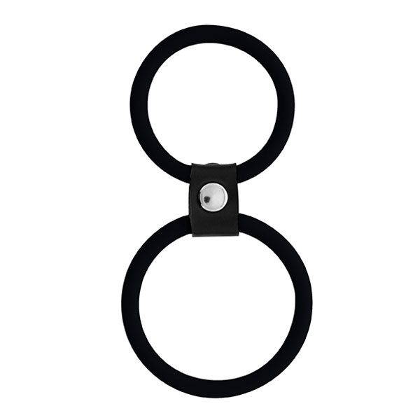 Вашему вниманию представлены два эрекционных кольца различного диаметра, которые соединены между собой коротким ремешком из искусственной кожи. Кольцо большего диаметра предназначается для утяжки фаллоса с мошонкой, кольцо меньшего диаметра - предназначено для утяжки полового члена.