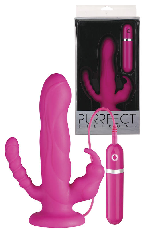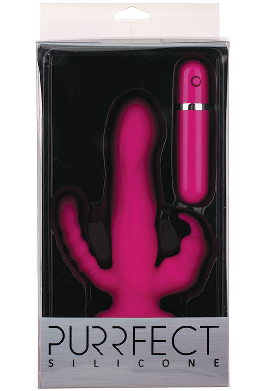 Вибромассажер PURRFECT SILICONE имеет 3 скорости вибрации и 10 режимов стимуляции. Он выполнен из безопасного медицинского силикона. Данная модель способна воздействовать на несколько эрогенных точек одновременно. Возможно использование в ванной комнате, так как имеет водонепроницаемую поверхность.