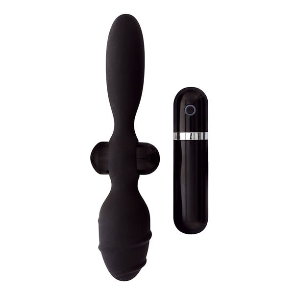 Двусторонний анальный вибромассажер выполнен из мягкого и гибкого силикона, приятного на ощупь. Один конец стимулятора выполнен в шарообразном стиле, другой - в форме конуса. Имеет 10 ружимов вибрации и управляется при помощи кнопки.