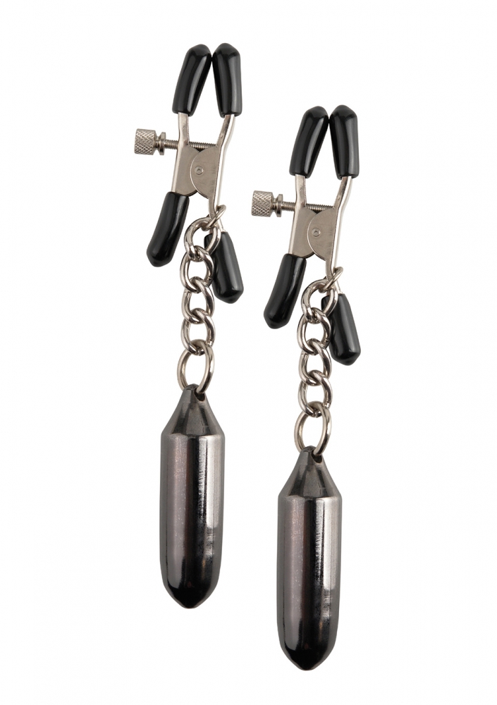 Стимуляторы-массажеры для сосков помогут женщине настроиться на возбуждение и подарят бурю дополнительных эмоций во время занятий любовью. Зажимы выполнены таким образом, что защищают женскую грудь от повреждений. Зажимы дополнены металлическими грузиками для усиления эффекта, сила давления которых регулируется при помощи специальных винтов. Женщина может сама управлять зажимами, а может доверить это своему мужчине.