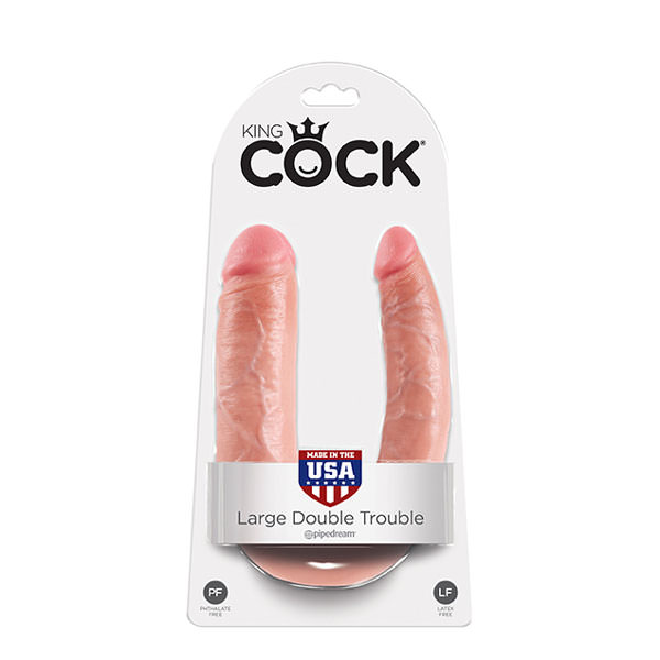 Фаллоимитатор двухконечный U-SHAPED LARGE DOUBLE TROUBLE из коллекции KING COCK изготовлен из надежного, безопасного материала ПВХ, который прекрасно зарекомендовал себя в сексуальной индустрии.
