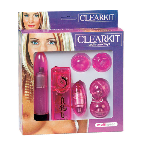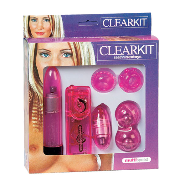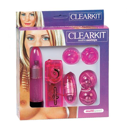 Набор массажеров и аксессуаров CLEARKIT SEE THRU SEX TOYS состоит из следующих элементов: вибратор, виброкапсула с пультом, вагинальные шарики, 2 кольца для улучшения эрекции.