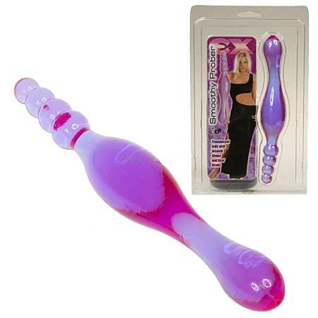 Вибромассажер для стимуляции ануса SMOOTHY PROBER фиолетового цвета выполнен из 100% силикона. Имеет гладкую поверхность с одной стороны и звенья шариков - с другой.