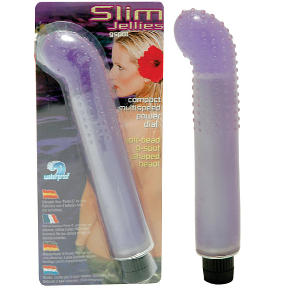 Гелевый вибромассажер фиолетового цвета Slim Jellies G-Spot изготовлен из материала, безопасного в применении и не вызывающего аллергию. Корпус вибратора водонепроницаемый, что позволяет использовать его в душе или бассейне. Подходит для стимуляции стенок влагалища и заветной точки G.
