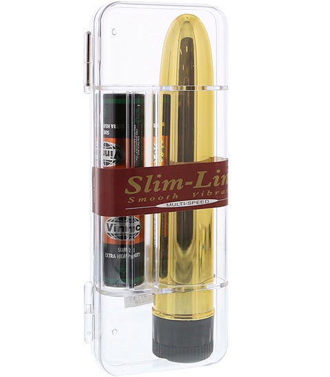 Гладкий золотистый вибратор SLIM-LINE VIBRATOR GOLD имеет несколько режимов вибрации и выполнен из акрила.