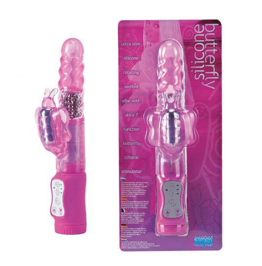 Вибромассажер "Бабочка" имеет стимулятор клитора в виде этого крылатого насекомого. Данная модель имеет несколько режимов вибрации и ротации. Нежная текстура и гладкая поверхность помогает стимулировать все интимные точки организма.