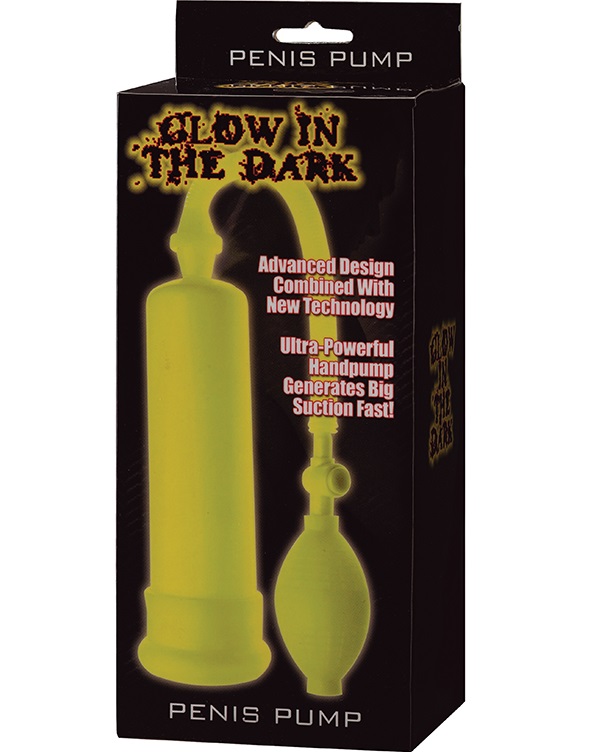 Массажер для мужчин с помпой GLOW IN THE DARK PENIS PUMP виден даже в темноте. Произведено в Китае.