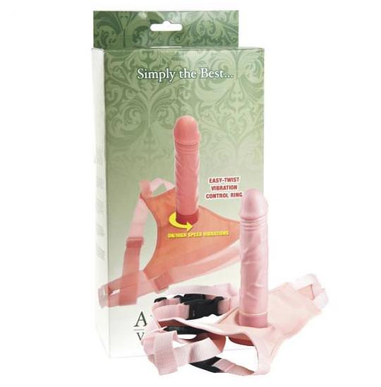 Страпон с вибрацией имеет реалистичный вид за счет ярко выраженных вен и объемной головки. Управляется при помощи колесика.