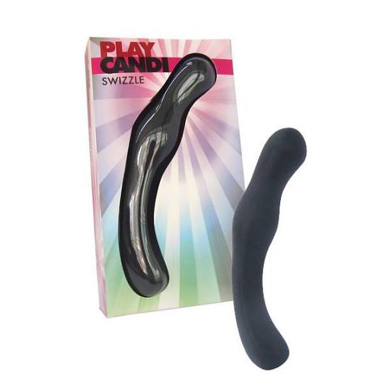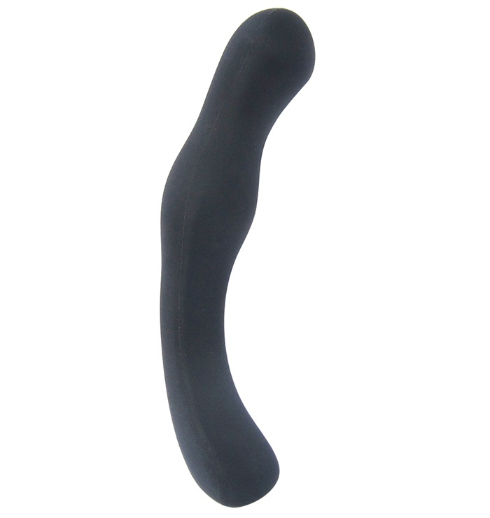 Изогнутый черный фаллоимитатор изготвлен из медицинского силикона и имеет водонепроницаемую поверхность.