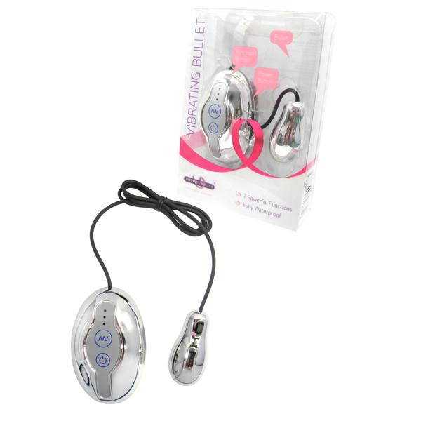 Вибропуля вагинальная серебристого цвета в стиле хай-тек.