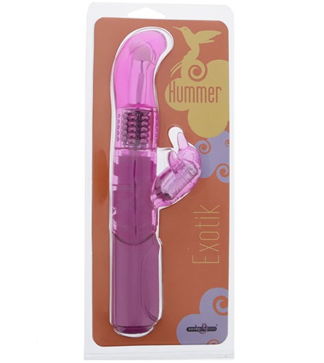 Вибромассажер насыщенно-розового цвета имеет несколько режимов вибрации, эскалации и водонепроницаемую поверхность.