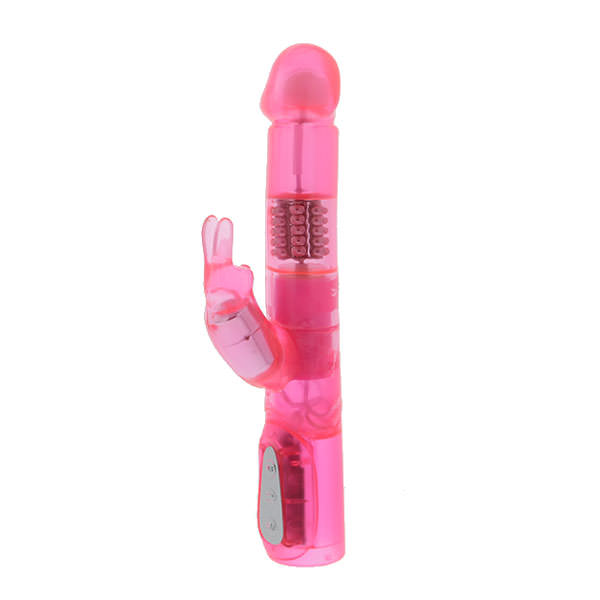 Вибромассажер насыщенно-розового цвета имеет несколько режимов вибрации, эскалации и водонепроницаемую поверхность.