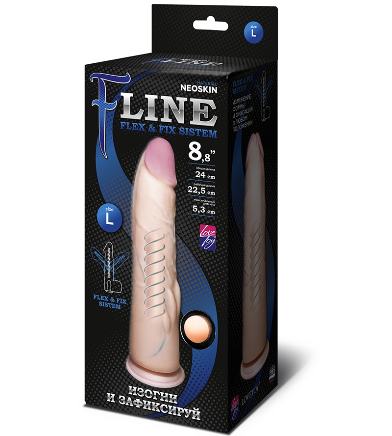 Инновационная модель фаллоимитатора на присоске серии "Flex & Fix Sistem" имеет многослойную структуру. Наружная оболочка изготовлена из нежного материала NEOSKIN. Внутренний каркас выполнен из более прочного полимера, который можно изогнуть, придать ему любую форму и зафиксировать в удобном для использования положении. Модели этой серии имеют размер чуть больше среднего. Может использоваться как насадка на пояс для страпона с соединением через кольцо.