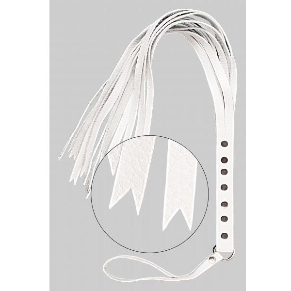 Флогер "Змеиная страсть" (многохвостая гладкая плеть) состоит из тонких полос мягкой телячьей кожи высокого качества. Ручка сформирована при помощи заклепок из нержавеющей стали. Данная плеть представляет собой эксклюзивный гаджет с 12 хвостами. По толщине и структуре кожи этот флогер относится к мягким видам прелюдии и рабочим девайсам. Его плюсами является тот факт, что им можно пользоваться практически без ограничений. Он нежен и безопасен. Такая длительная работа используется, прежде всего, при разогреве (начале флагелляции). Для дополнительного комфорта имеется петля, которая одевается на руку.
