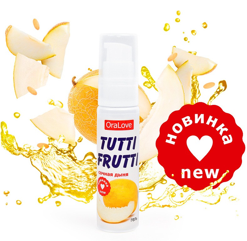 TUTTI-FRUTTI Сочная Дыня - гель-лубрикант на водной основе со сладким вкусом и незабываемым ароматом спелой дыни! Он откроет новые грани орального секса, подарит невероятные фантазии во время любовной игры!