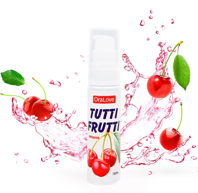 Гель "TUTTI-FRUTTI Вишня" со вкусом и запахом садовой вишни. Гель изготовлен на водной основе, легко наносится на кожу и усиливает процесс скольжения во время занятий сексом. Гель не оставляет жирных пятен, не липнет и легко смывается водой. Гель съедобен и безопасен в применении.
