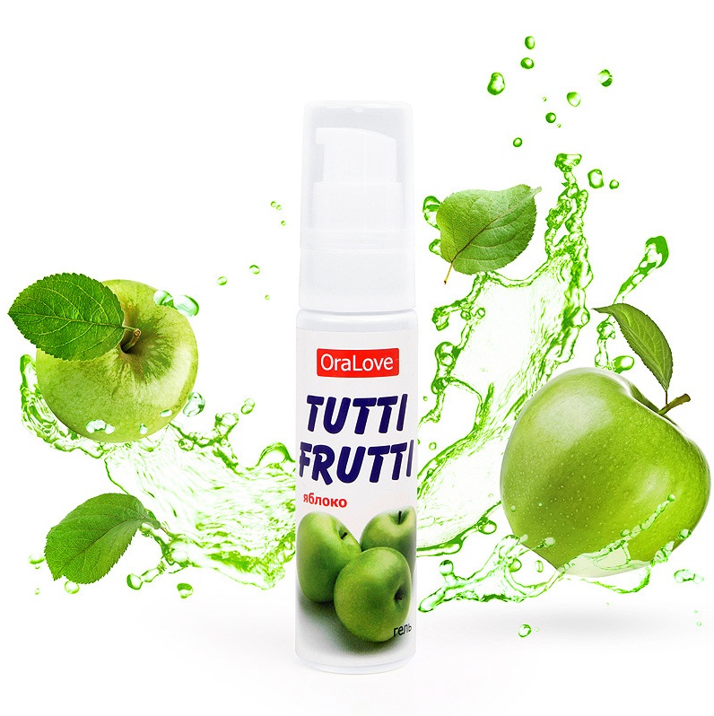 Гель "TUTTI-FRUTTI Яблоко" со вкусом и запахом садовых яблок. Гель изготовлен на водной основе, легко наносится на кожу и усиливает процесс скольжения во время занятий сексом. Гель не оставляет жирных пятен, не липнет и легко смывается водой. Гель съедобен и безопасен в применении.
