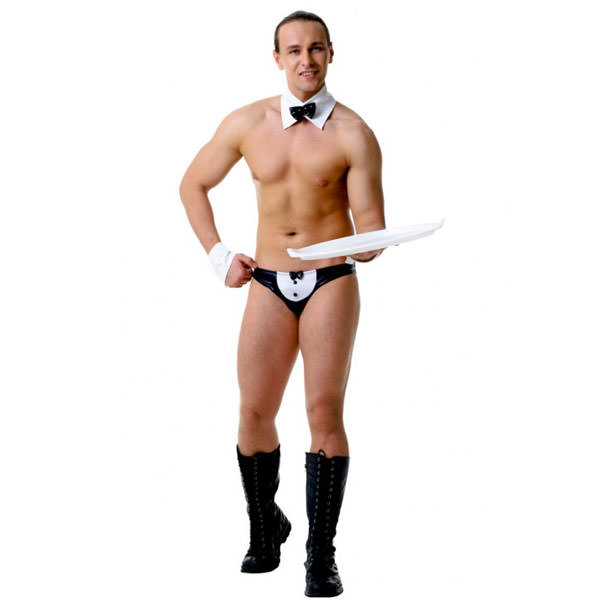 Костюм для ролевых игр Официант подойдет для азартных мужчин, любящих авантюры не только в жизни, но и в постели. Покорный официант выполнит любую вашу просьбу. Включите фантазию и наслаждайтесь присутствием обслуживающего вас персонала у себя в спальне. И не забудьте про чаевые...