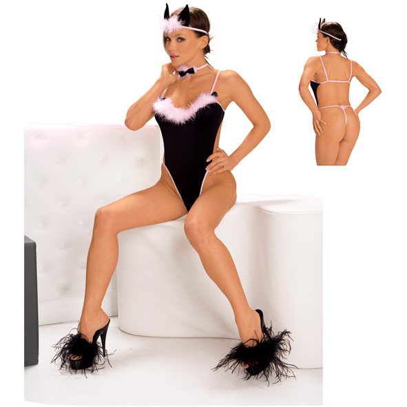 Сексуальный комплект нижнего белья CAT UNIFORM включает в себя: открытое со спины боди, пушистые ушки, бантик на шею.