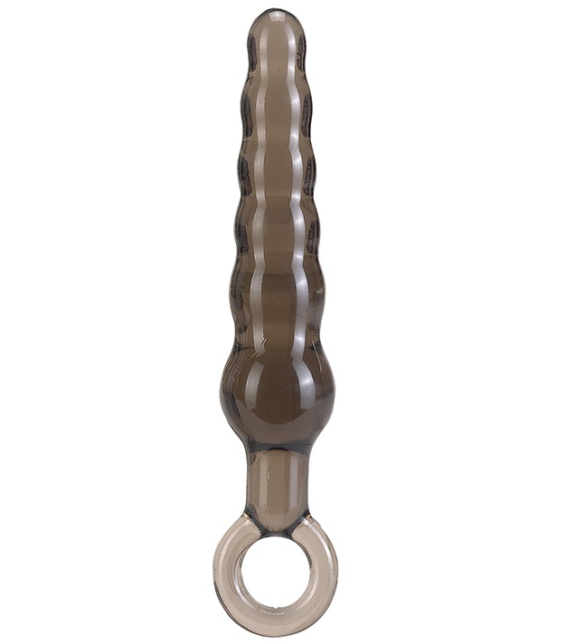 Массажер для стимуляции ануса имеет остроконечную, ребристую форму и кольцо у основания. Модель выполнена из медицинского силикона.