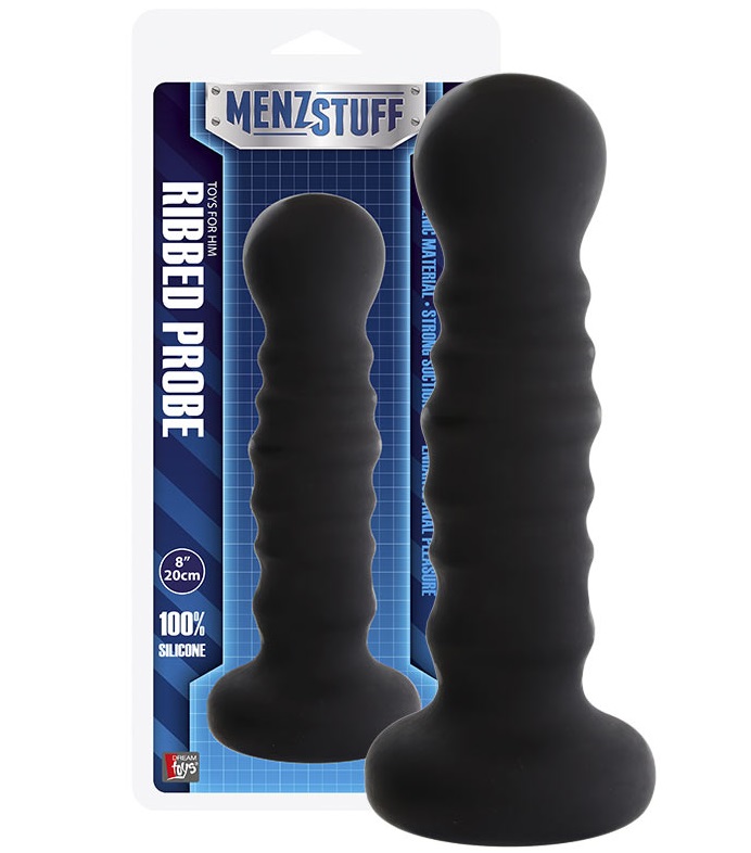 Массажер для стимуляции ануса имеет ребристую поверхность и крепится с помощью присоски. Для усиления эффекта скольжения используйте гель на водной основе.