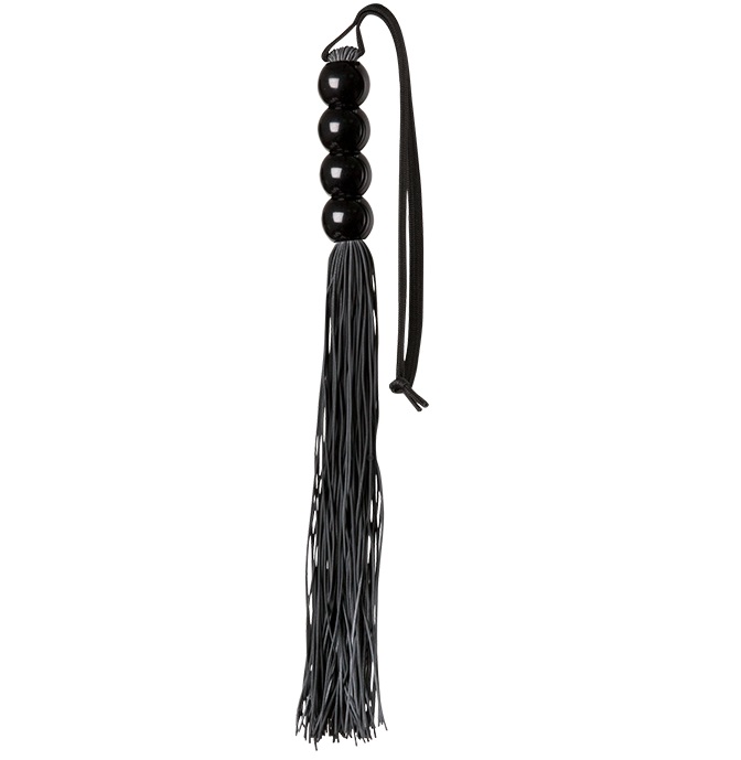 Черная силиконовая мини-плеть с массажной рукояткой и шнурком.