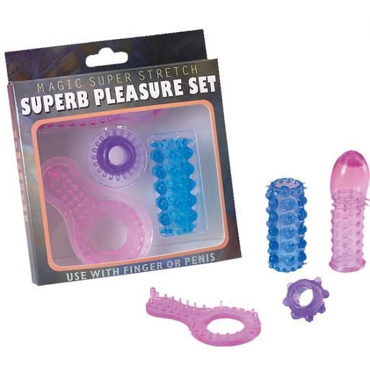 Набор стимулирующих насадок (4 шт.) из нежного, эластичного материала. В наборе 2 насадки для внешней стимуляции: одна- на основание полового члена для клиторальной стимуляции, вторая - кольцо стимулирующее вход во влагалище. И 2 насадки для стимуляции внутри: одевается на ствол полового члена в виде "трубочки" не покрывающей головку и насадна полностью покрывающая и головку, и ствол полового члена. Все они выполнены из хорошо тянущегося, комфортного на ощупь, гипоаллергенного материала. Многоразового использования. Этот набор поможет разнообразить вашу сексуальную жизнь!