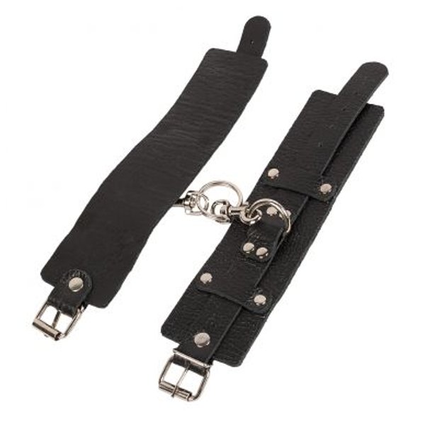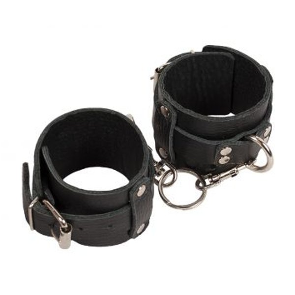 Наручники "Долгожданная утеха" изготовлены из высококачественной итальянский кожи черного цвета. А итальянцы знают толк в кожаных изделиях. Внутренняя подкладка мягкая, не травмирует кожу, благодаря тому, что вся металическая фурнитура спрятана за ней. За счёт карабинов наручники легко разъединяются и быстро застёгиваются. Подойдут как для новичков, так и для опытных игроков любовного фронта.