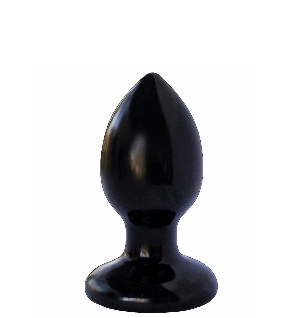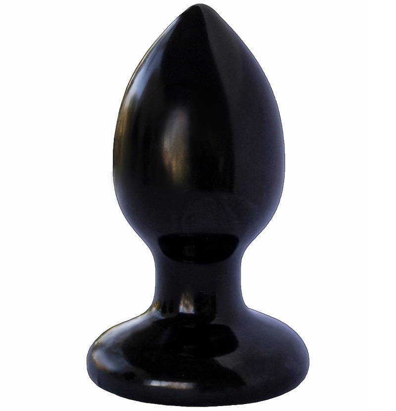 Глянцевая анальная пробка без швов дополнена ограничителем для безопасного извлечения игрушки.