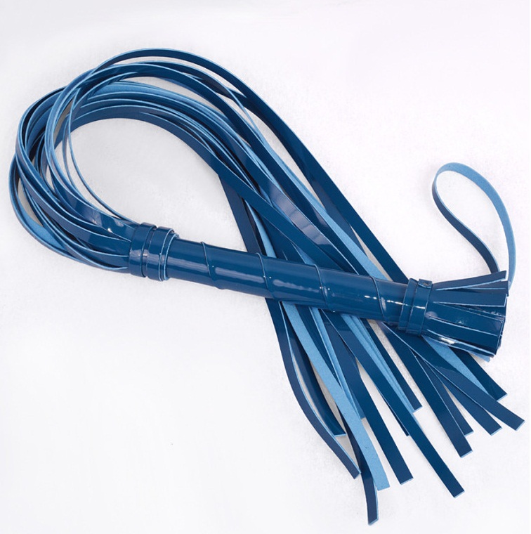 Гладкая лаковая плеть (флогер) выполнена из искусственной кожи и имеет красивый синий оттенок. Состоит из жёсткой рукоятки и хвоста из 24 лент. Общяя длина плети 65 см. Применяется как правило для прелюдии и разогрева (начало флогеляции). Оптимально использовать как мужчиной, так и женщиной.