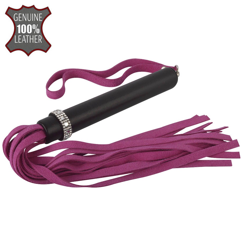 Плеть "Гламур" со стразами полностью выполнена из натуральной велюровой кожи. Для комфортного использования на торце ручки имеется ремешок. Длина ручки – 15 см, диаметр – 2,2 см, длина ударной части 25 см.