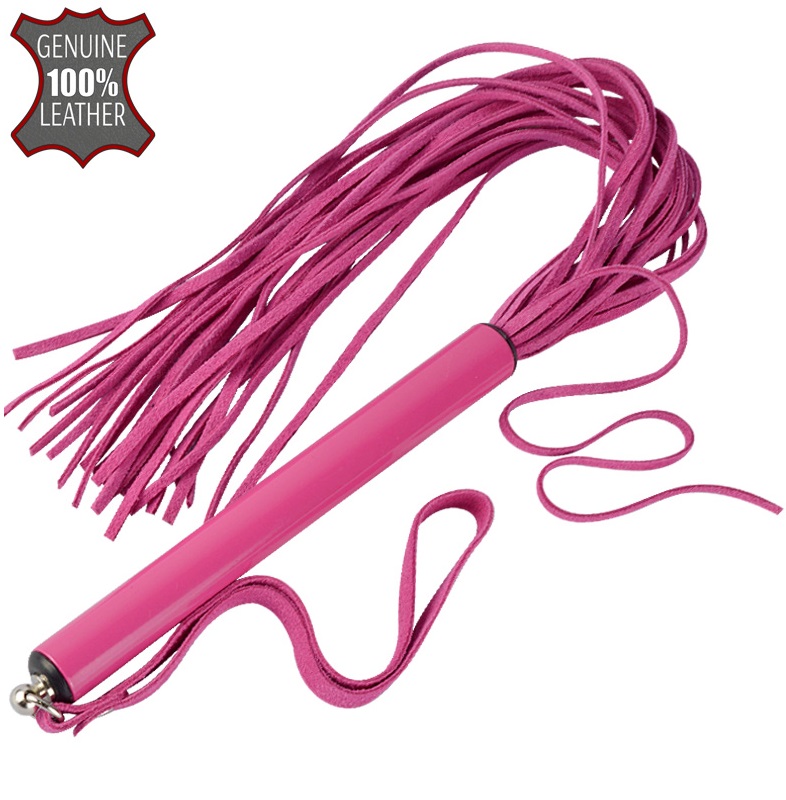 Компактная плеть с хвостом из тонких 3-х мм лент натуральной велюровой кожи. Ударная часть плети выполнена в гламурном розовом цвете. Металлическая рукоять цилиндрической формы имеет диаметр 1,6 см, длину – 15 см. Общая длина изделия без ремешка - 47 см. Данное изделие понравится стильным девушкам, которые следят за модой.