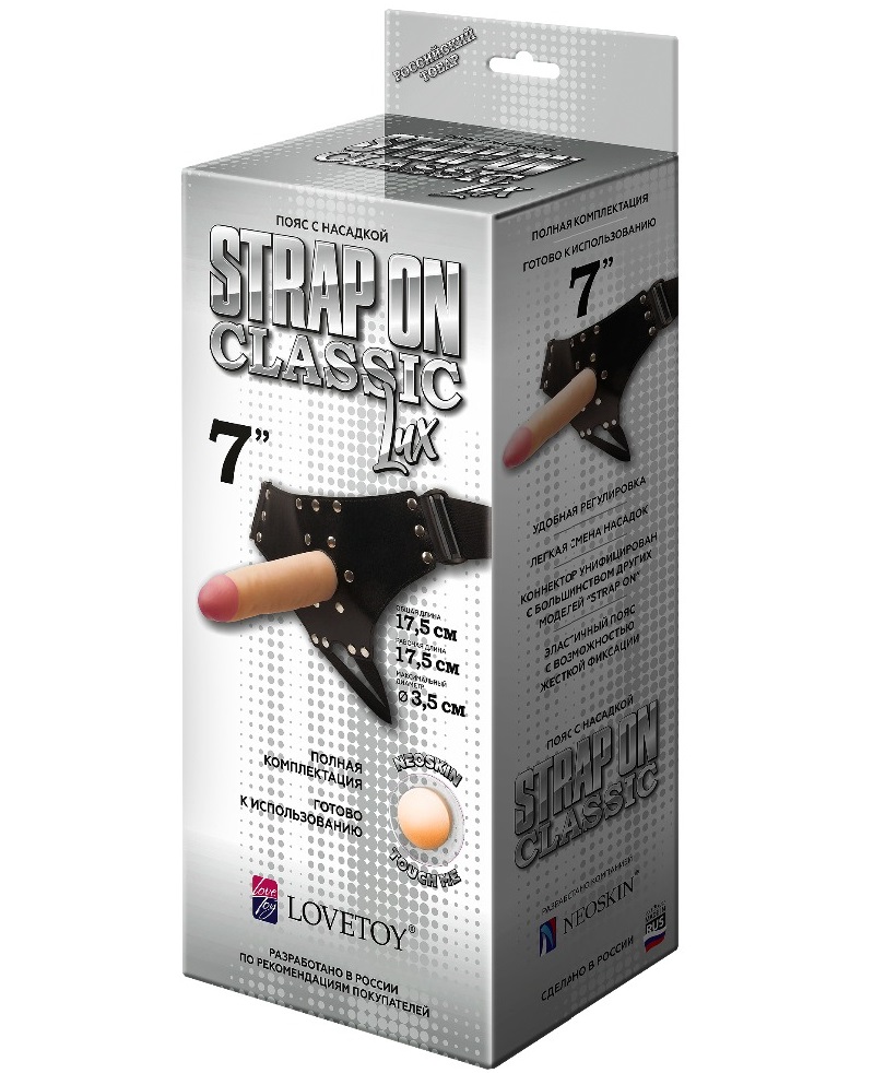 Одна из классических моделей поясов "Харнесс". Трусики изготовлены из нескольких слоев полиуретановой стрейч-кожи (снаружи) и покрыты нежным бархатом внутри. Специально подобранные для этой модели материалы зарекомендовали себя, как наиболее комфортные и практичные для этих целей. Фиксация пояса представляет собой широкую эластичную ленту и бандаж для надежного охвата спины. Дополнительно имеется фиксация двумя кожаными ремешками, проходящими между ног. Насадка изготовлена из супермягкого материала "NEOSKIN" и имеет эластичный, упругий каркас внутри.
