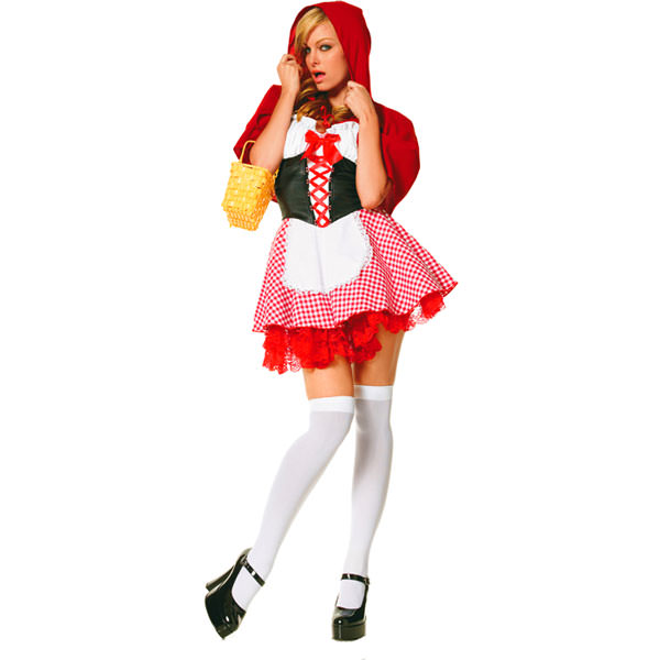 Костюм для ролевых игр "Красная шапочка" состоит из следующих предметов одежды: сексуально-игривое мини-платье с пышной юбкой, накидка.