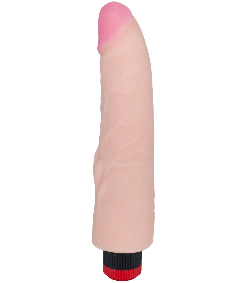 Крупное изделие из композитного материала: двойная структура из полужесткого эластичного каркаса, покрытого супермягкой оболочкой. Технологии протезирования. Равномерно изгибается до 60 градусов. В нижней трети основания имеются рельефные отростки для более интенсивной стимуляции клитора. Корпус конусообразный для легкого проникновения. Объемная, нежная головка. Максимальная вибрация по центру корпуса. Атравматичное изделие. Рекомендовано использовать лубрикант только на водной основе. Изделие предназначено для крупных рожавших женщин или как сексуальная атрибутика для пар.