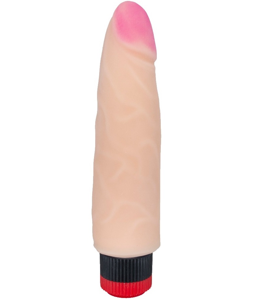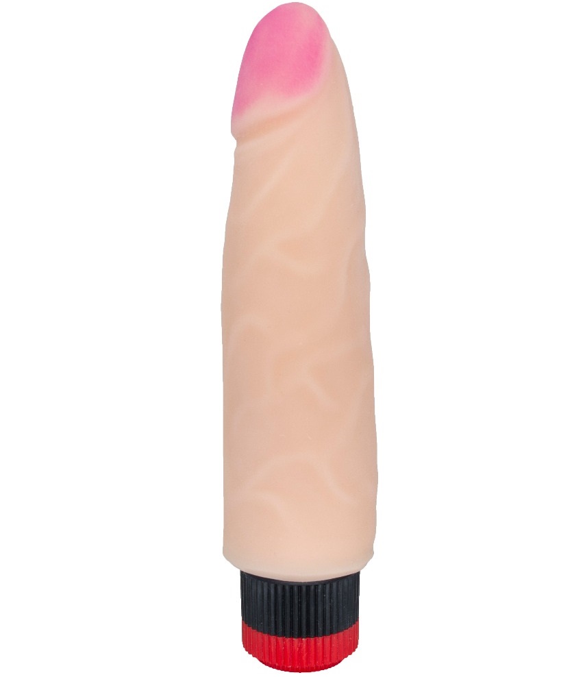 Прямой, цилиндрический вибромассажер с аккуратной заостреной головкой для комфортного введения при узком входе во влагалище. Вибрация в средней части изделия. Эластичная головка, залитая гелем. Данная модель входит в группу изделий с применением технологии протезирования. Композитная структура с полужестким, подвижным каркасом и сверхмягким атравматичным покрытием из ультрасовременного материала. Реалистичная модель среднего размера с двухслойной структурой. Покрыт тонким слоем сверхмягкой «кожи» из материала киберскин последнего поколения и содержит эластичный каркас средней жесткости. Сгибается до 30%. Интенсивная вибрация. Материал безопасен в применении.