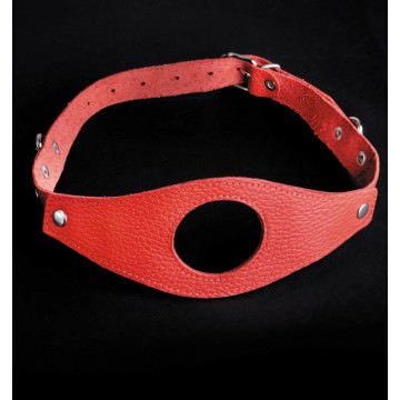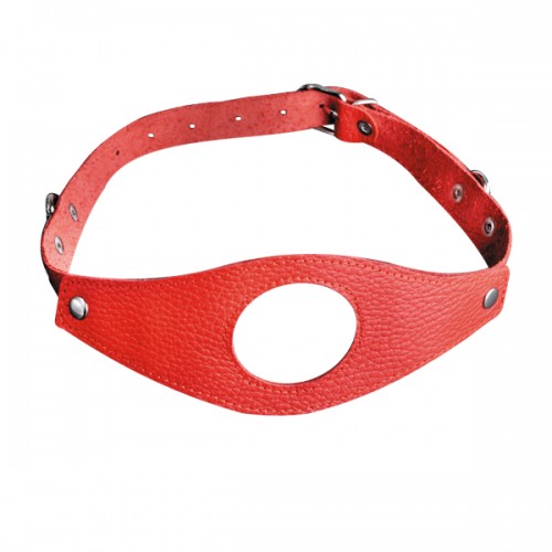 Кожаный кляп с прорезью подходит для ролевых игр с партнером. Размер - универсальный. Цвет - красный.