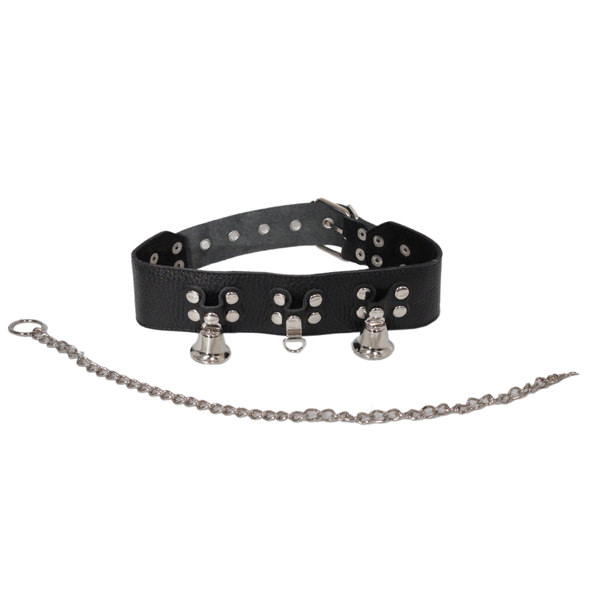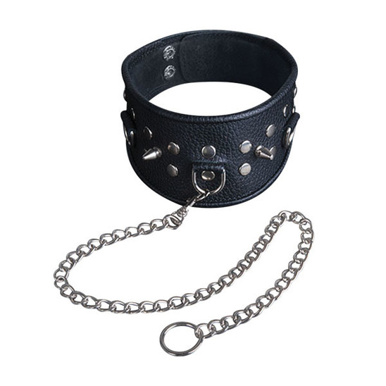 Ошейник с цепочкой и металлическими заклепками станет прекрасным атрибутом ролевых игр. Застегивается на шее при помощи ремешка.