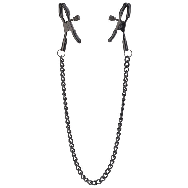 Стимуляторы для груди металлические соединены между собой длинной цепочкой.