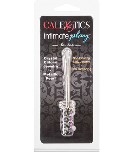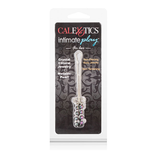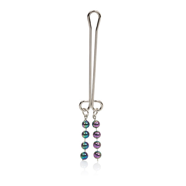 Клиторальный стимулятор и одновременно зажим для сосков, декорированный металлическими жемчужинами.