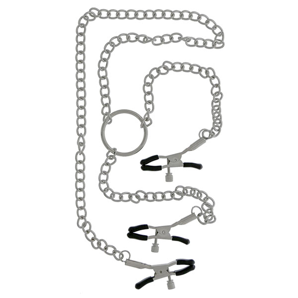 Зажимы для сосков и клитора с регулируемым винтом для максимального контроля силы сжатия. На цепочке.